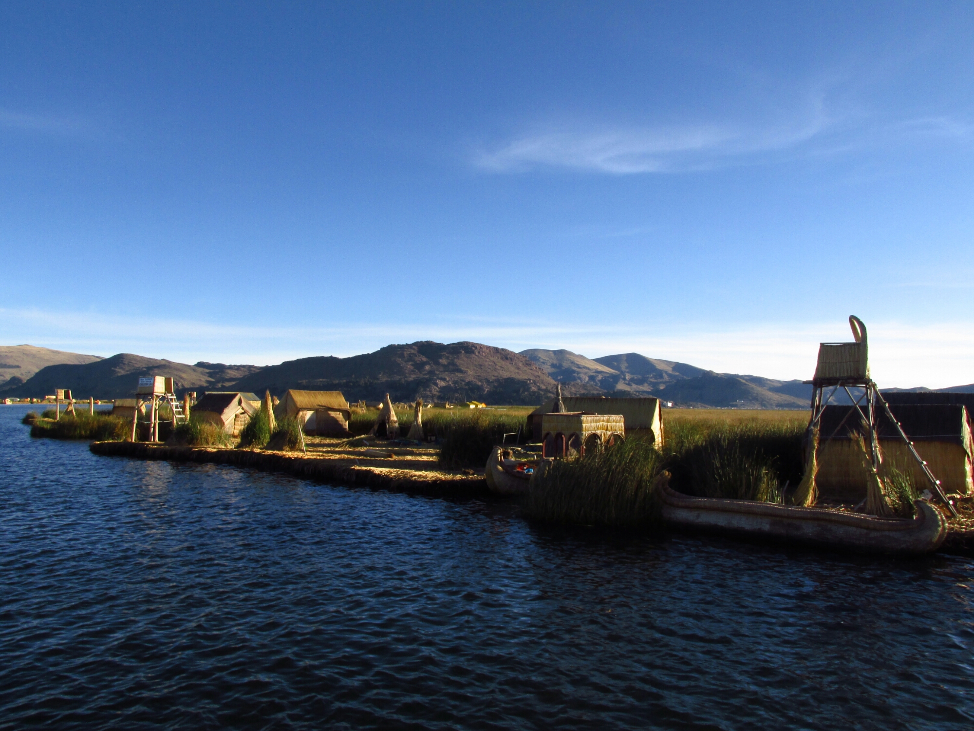 En Bolivie, on écrit Titicaca tandis que de l’autre côté de la frontière c’est Titikaka. Étrange! Nous l’avons apprit en visitant les Iles flotantes du Pérou. Seulement 40% des îles sont encore habitées aujourd’hui. Sinon, les péruviens font l’aller-retour chaque jour pour les touristes. Pour sauver un peu de sous, j’ai opté pour un « tour » cheap! Erreur!!! On vous amène sur ces fausses îles où une mise en scène vous attend. Donc, si vous désirez visiter les îles flotantes, tentez de vous y rendre par vos propres moyens ou informez vous bien! Il existe des centaines d’îles plus ou moins éloignées de la ville, vous trouverez! Il est intéressant de voir comment les gens pouvaient vivre sur ces agglomérations de pailles.