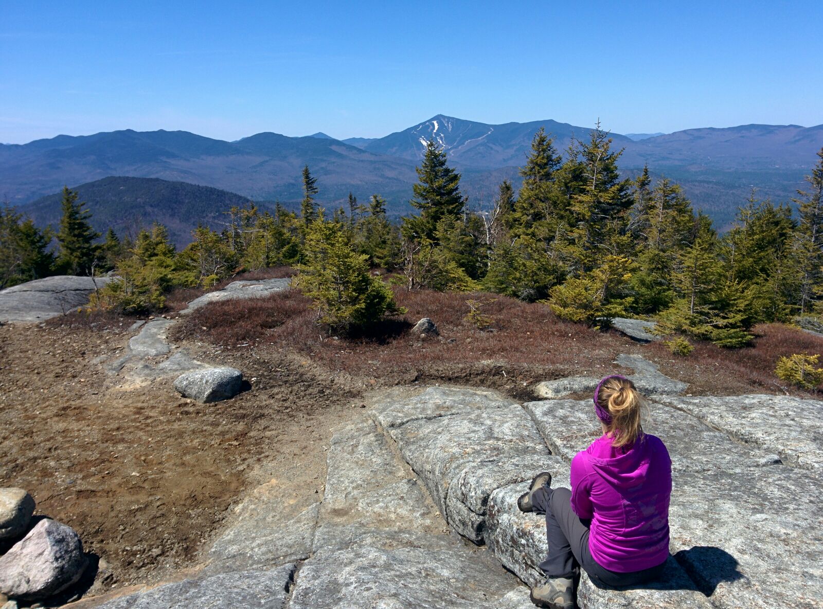 Un peu plus difficile que les 2 autres, Giant Mountain est le douzième sommet le plus haut des Adirondacks situé à 1410 mètres d’élévation. Durant la randonnée d’approximativement 6h aller-retour, il est possible de s’arrêter à plusieurs endroits pour contempler le paysage et les vallées environnantes. Lorsqu’on arrive sur les caps rocheux, il est facile de s’écarter du sentier puisque les directions sont dessinées à même la roche et sont parfois très pâles. À quelques endroits, la montée est très abrupte et l’utilisation de nos mains est nécessaire à l’équilibre, toutefois rien d’alarmant pour une mère anxieuse 😉