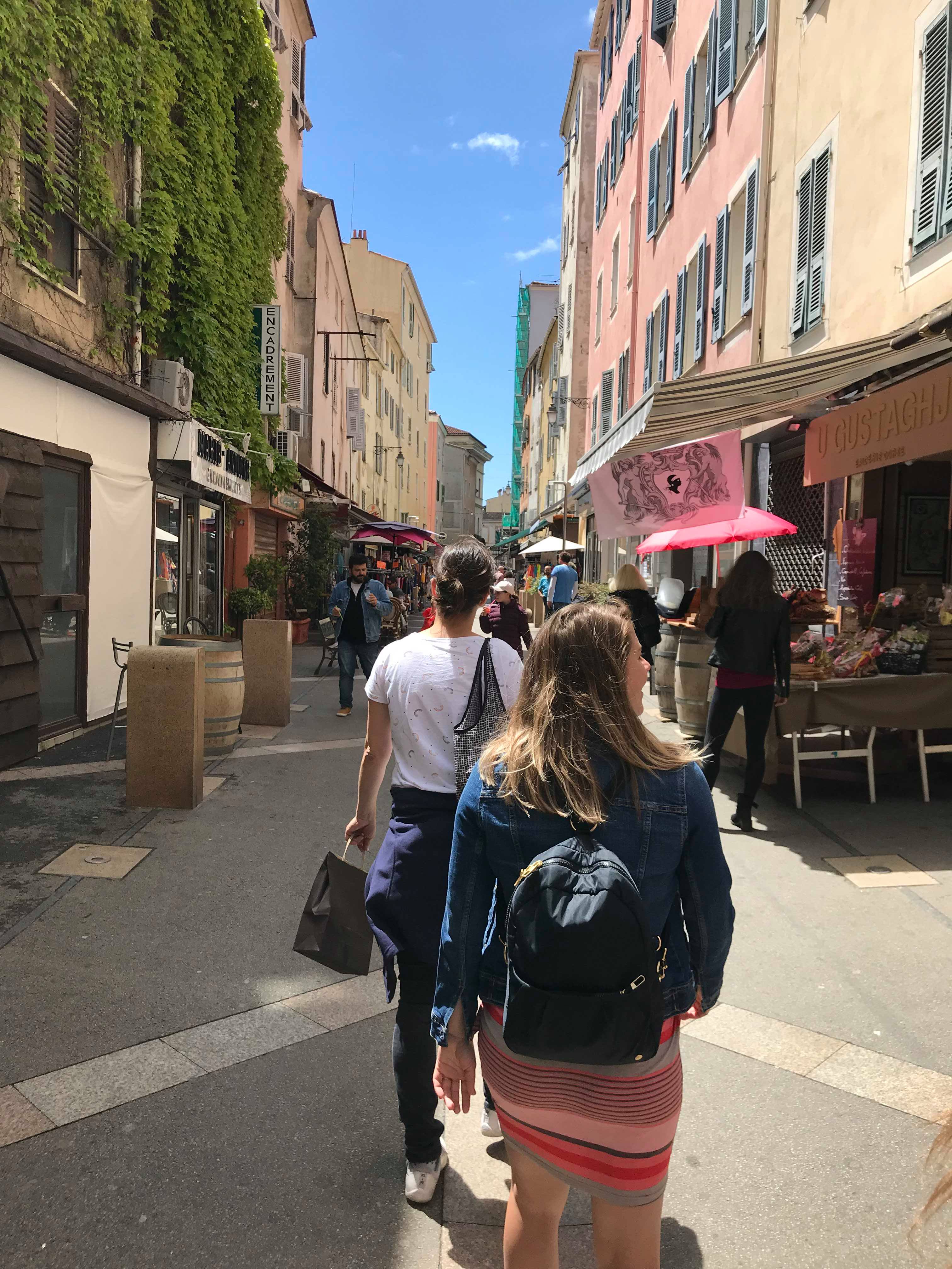Nous sommes atterris à Bastia au Nord est de l’île, après un vol partant de Paris. Notre chambre, située dans les montagnes nous offrait une vue sur la mer et le port qui s’anime en soirée. La ville d’environ 45 000 habitants est très belle. Le port, bordé de restaurants, la citadelle, la place du marché et les bands live le samedi, l’église est sans doute la plus belle de Corse.