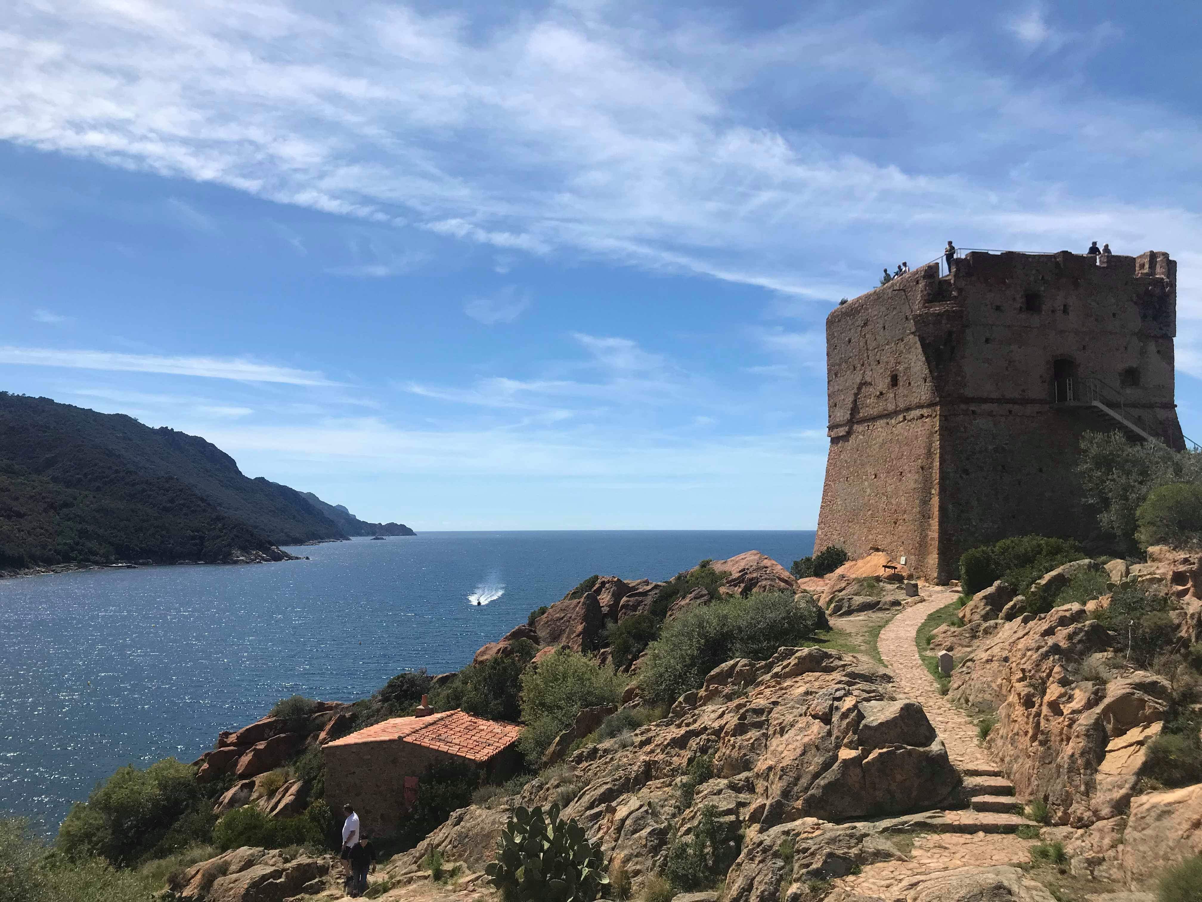 Ensuite, nous avons mis le cap vers Porto, petit village qu’il est facile de louper tant il est caché dans une petite vallée sur la route. Nous avons déambuler dans les rues, fait une petite randonnée jusqu’à la tour génoise et finalement, nous avons fait une petite croisière pour admirer les Calanques de Piana, un site classé au patrimoine de l’Unesco, avec la compagnie Alpana qui nous a offert un très bon service. Notre guide nous a partagé l’histoire des villages qu’on pouvait apercevoir de notre bateau, ils nous a expliqué les nombreuses formations rocheuses des Calanques et décris la faune de la région. Une excursion que nous ne sommes pas prêts d’oublier. Avant de partir pour Ajaccio, nous nous sommes arrêtés au « Château fort » pour faire une courte randonnée d’une heure et avoir une vue imprenable sur le Golfe de Porto.